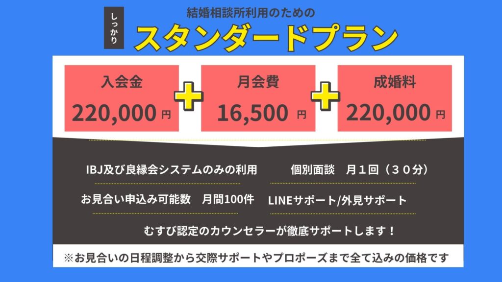 ※月会費には、お見合い料・システム利用料・カウンセラーとの面談(月1回)・LINEフォローなどすべて含まれております。